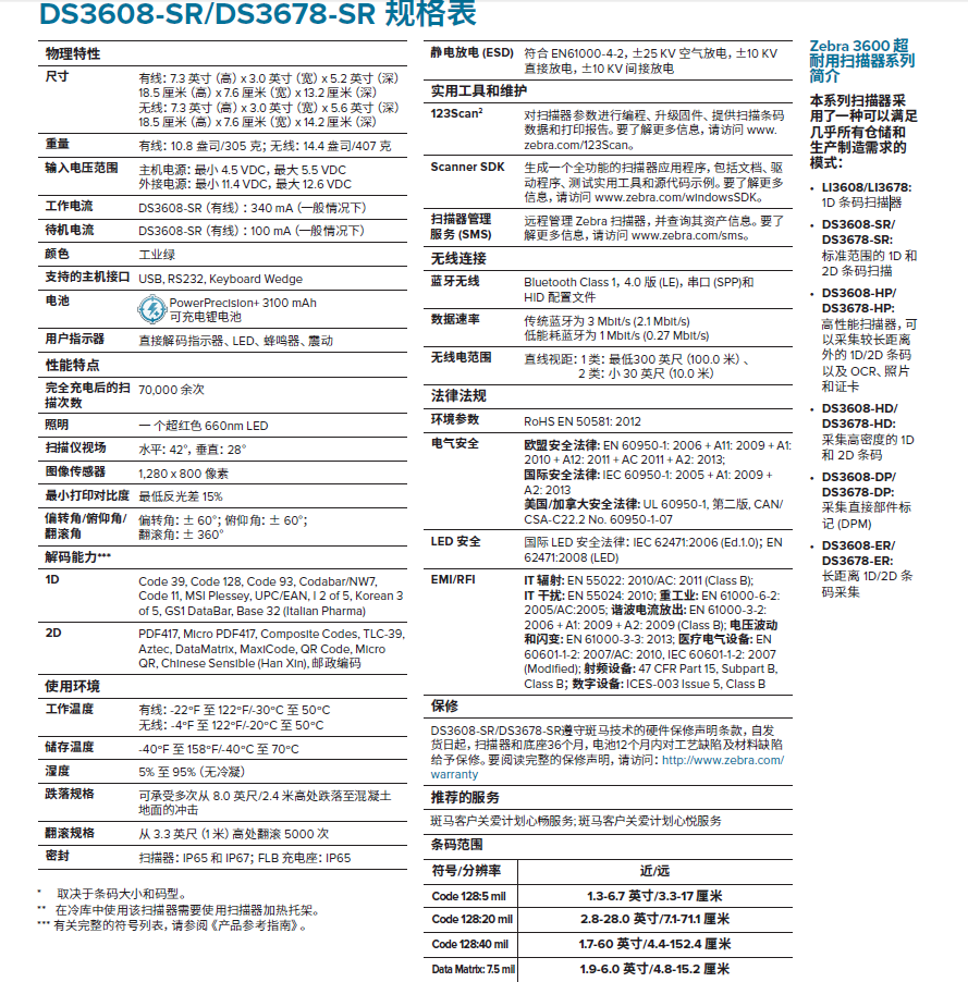 DS3608-SR/DS3678-SR 一維/二維超耐用型掃描器