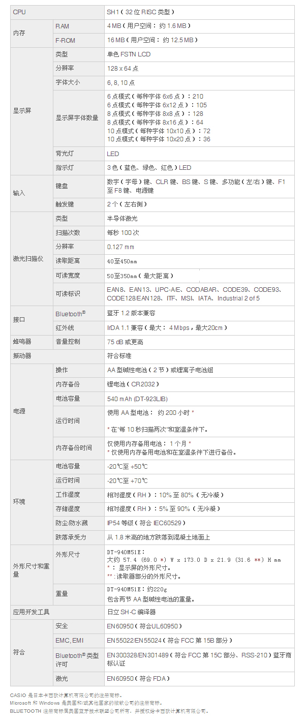 • CASIO卡西歐DT940數(shù)據(jù)采集器 盤點機(不含底座)DT930升版