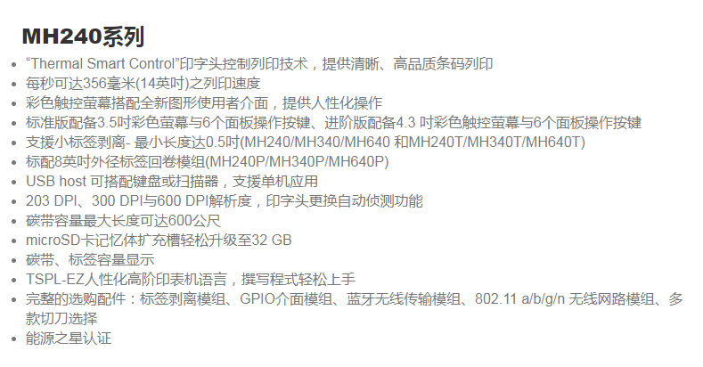 TSC MH240系列 打印機