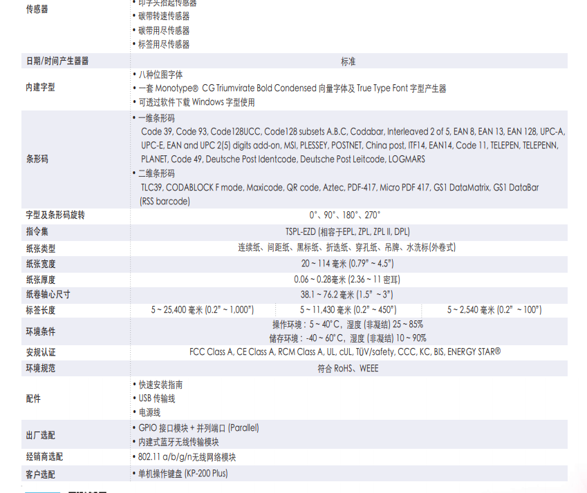 完整的選購配件:標簽剝離模組、GPIO介面模組、藍牙無線傳輸模組、802.11 a/b/g/n 無線網路模組、多款切刀選擇