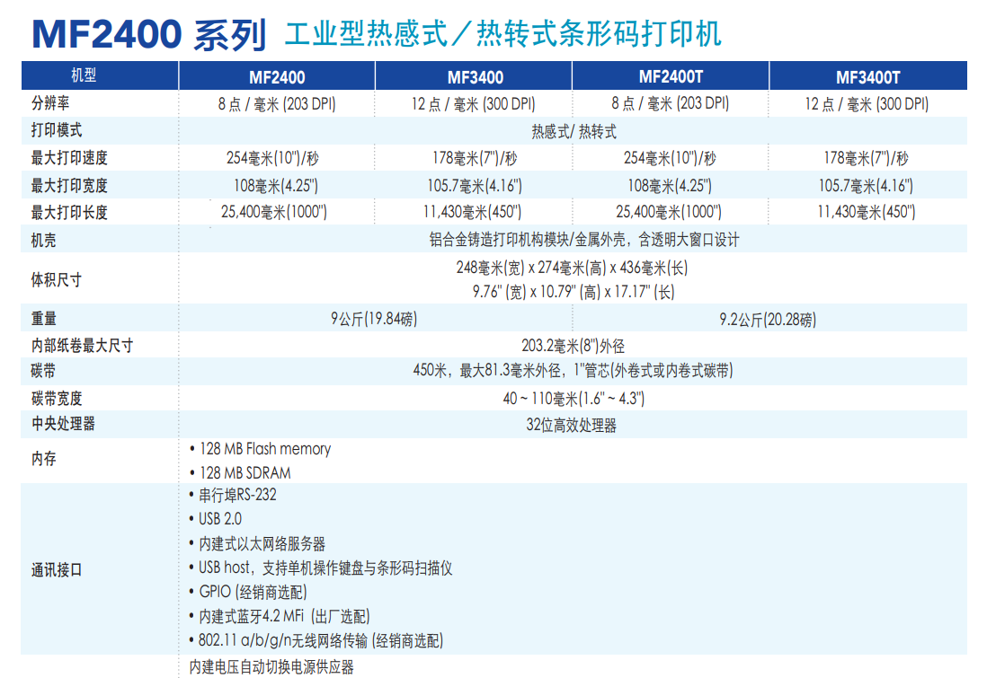 5個(gè)LED燈與2個(gè)面板操作按鍵(MF2400/MF3400)/ 3.5”HVGA彩色觸控屏幕與6個(gè)面板操作按鍵(MF2400T/MF3400T)