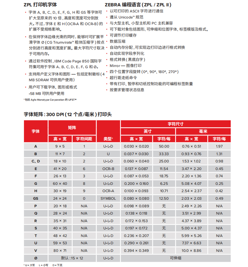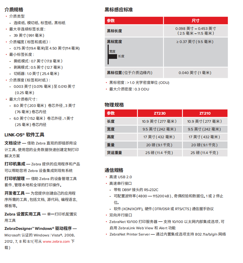 以下規(guī)格僅供參考,并且基于使用Zebraa? 原廠耗材對 ZT200? 工業(yè)系列打印機(jī)所進(jìn)行的測試。測試的結(jié)果會(huì)因?qū)嶋H的應(yīng)用設(shè)置或使用非建議的Zebra品牌耗材而存在差異。Zebra始終建議通過測試來檢驗(yàn)應(yīng)用。